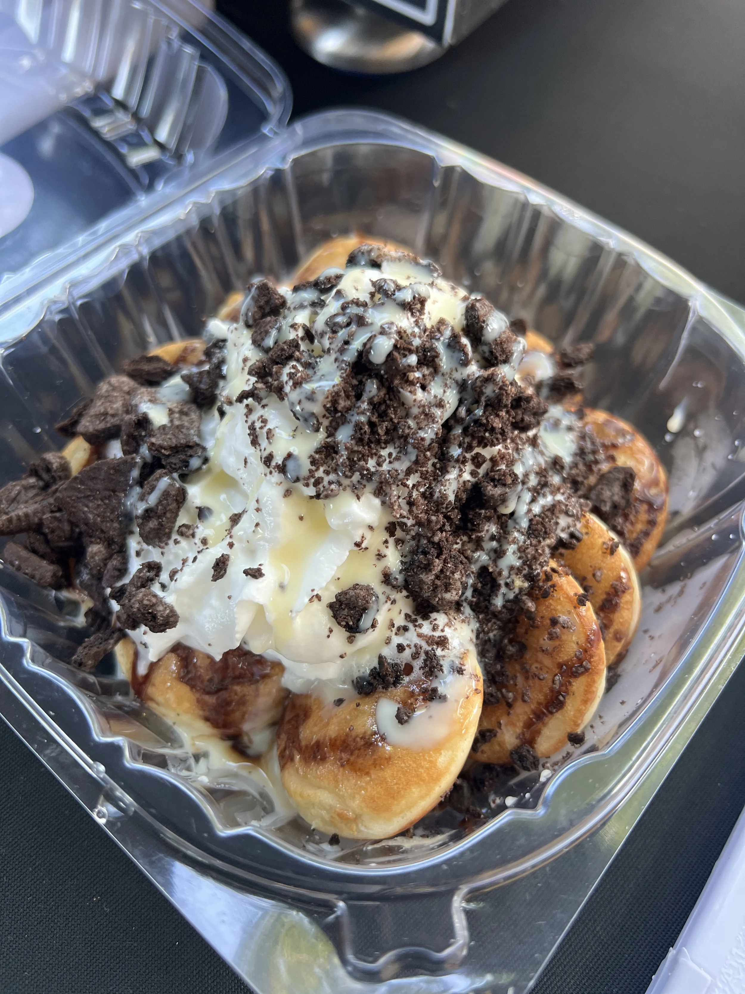 Crushed Oreos, chocolate drizzle,vcondensed milk and whipped cream—like dessert for breakfast!