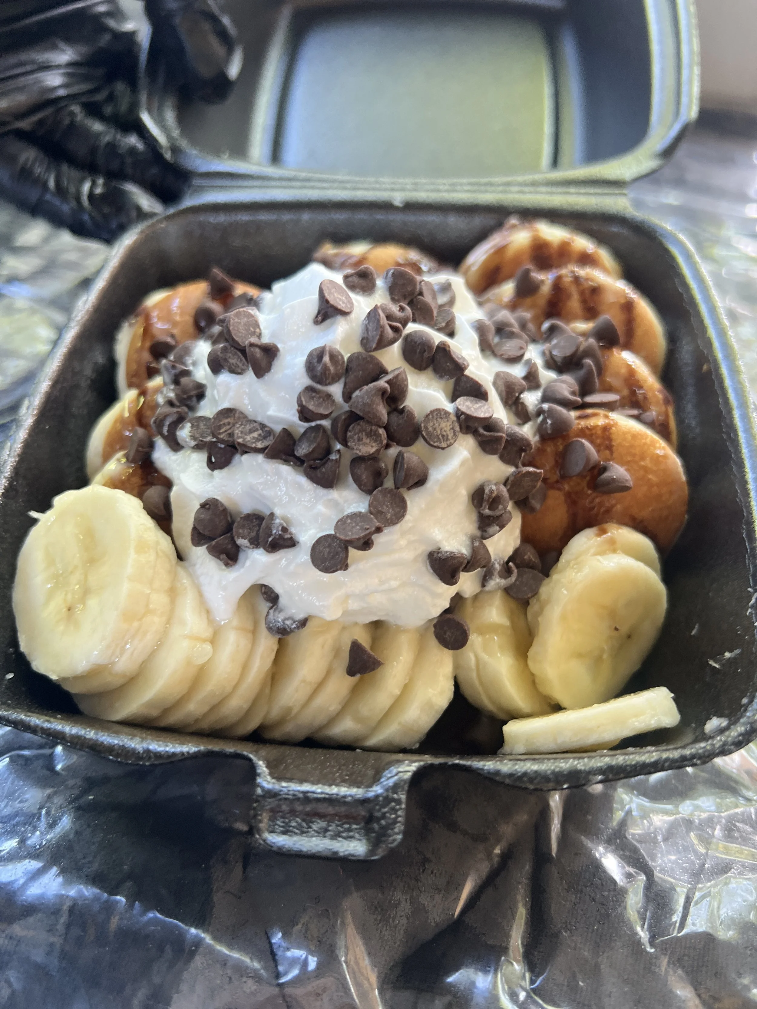 Start with a stack of golden mini pancakes and make it yours! Includes up to 2 sauces and 3 toppings.(additional toppings extra)